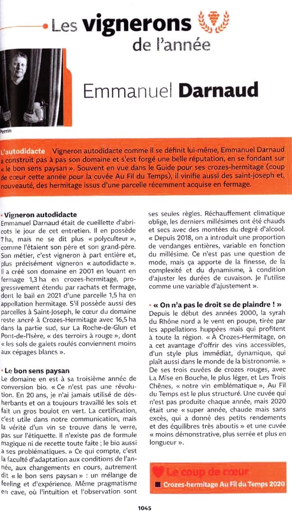 Coup de coeur du Guide Hachette: Our Crozes-Hermitage Rouge – Cuvée “Au Fil du Temps” 2020